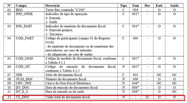 REGISTRO C100: NOTA FISCAL (CÓDIGO 01), NOTA FISCAL AVULSA (CÓDIGO 1B), NOTA FISCAL DE PRODUTOR (CÓDIGO 04), NF-e (CÓDIGO 55) e NFC-e (CÓDIGO 65).