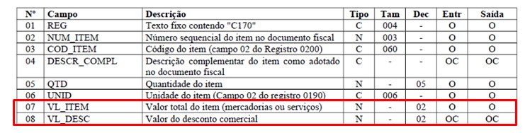 REGISTRO C170: ITENS DO DOCUMENTO (CÓDIGO 01, 1B, 04 e 55).