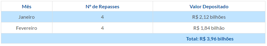 Em 2016 o Governo de São Paulo realizou 52 depósitos e repassou às prefeituras do Estado o total de R$ 24,78 bilhões.